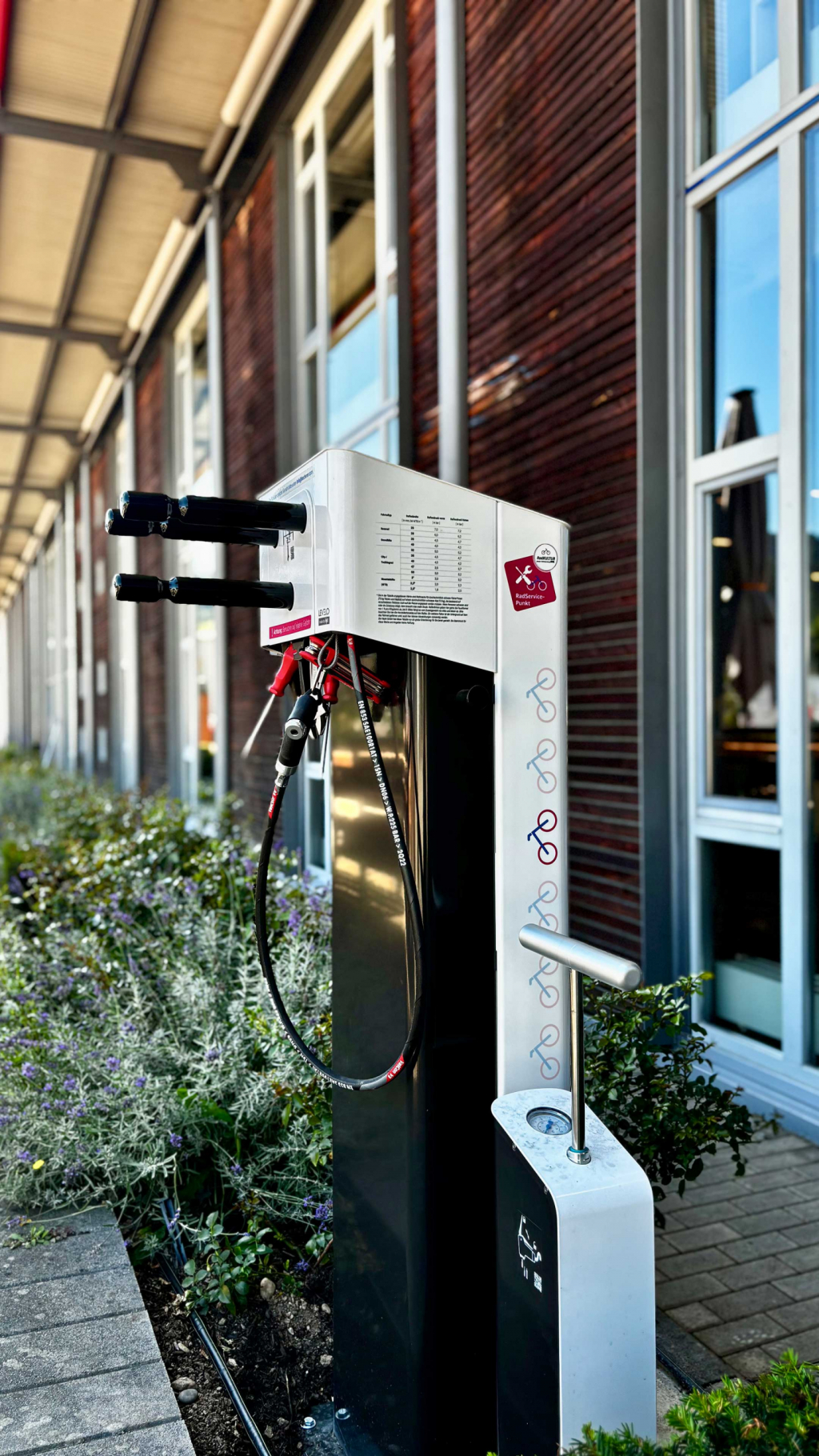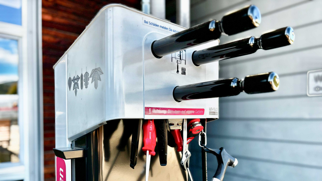Ausgestattet mit Luftpumpe, Werkzeug und Fahrradhalterung können kleinere Reparaturen ganz einfach selbst erledigt werden. Der Service eignet sich ideal für unterwegs, auf dem Weg zur Arbeit oder bei einer Panne. Dank der zentralen Lage ist der Servicepunkt bequem erreichbar und rund um die Uhr nutzbar. So bleibt man jederzeit mobil – ob im Alltag oder auf längeren Touren.